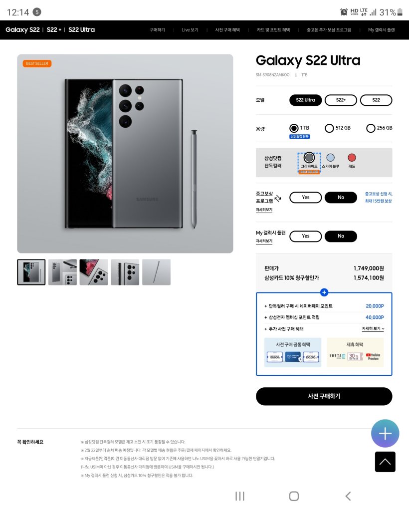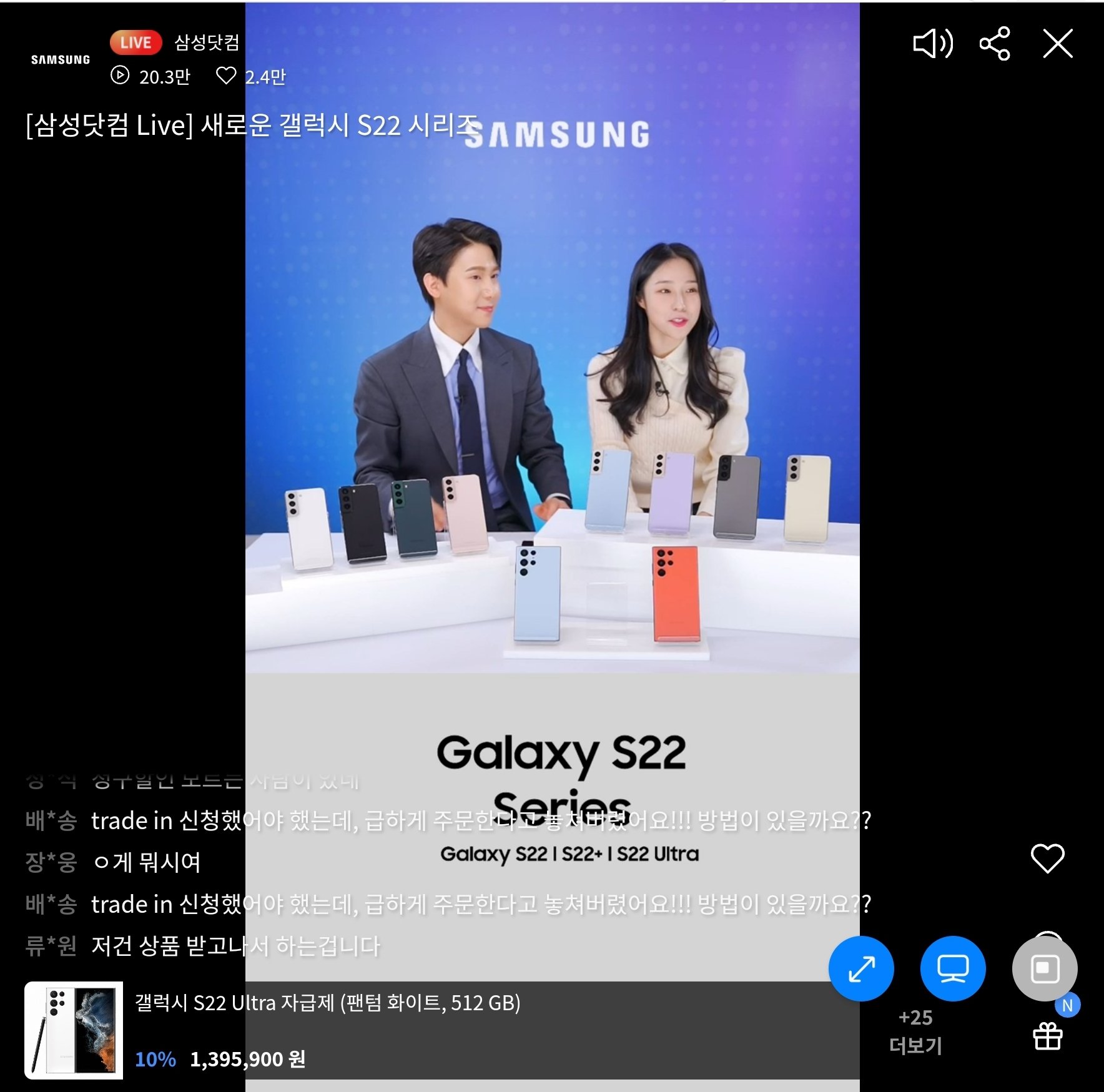 디지털/가전 삼성닷컴 모바일라이브-2.14 0시 삼성 갤럭시 S22 자급제 판매개시 시청자 30만명 돌파 Date: 2022년 2월 14일Author: 이상민 0 댓글 .https://player.sauceflex.com/broadcast/lksamsung-9dfd3a0e09fe4435a7f521c760467ea2? 이 글 공유하기: X에 공유 (새 창에서 열림) X Facebook으로 공유하기 (새 창에서 열림) Facebook 좋아하기 가져오는 중... 관련